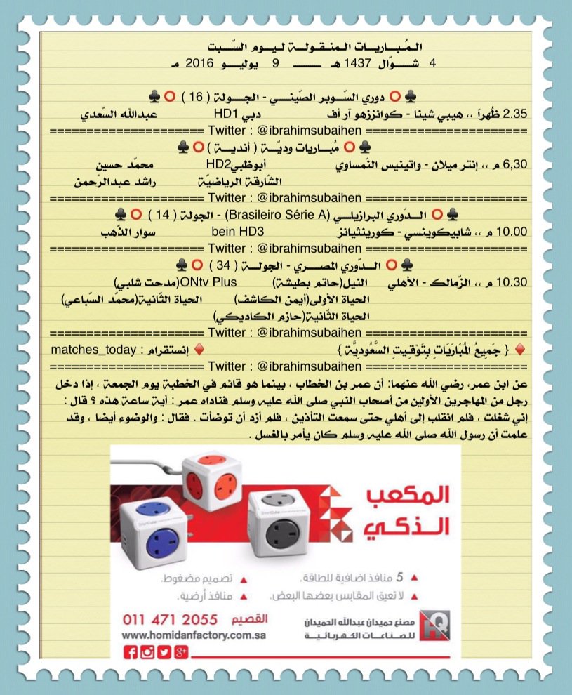 مــبـاريــات الـــسـبـت ’’’ دور 8 لــبـطـولــه امم اوروبـــا 2016 > ايطاليا ،، المانيا :::،’’،،’’ دوري ســوبـــر الــصــيــنـــي الــجــولــه 15 | سيف2013 | :: القسم الرياضي :: | 4 | 03-07-2016 10:57 AM |