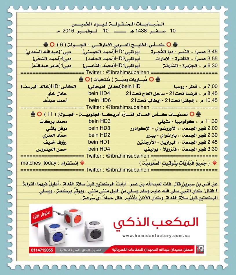 مـبــاريـــات الـخـمـيــس " * " تصفيات كاس العالم لقاره امريكا الجنوبيه الجوله 11 " كاس الخليج العربي الاماراتي الجوله 6